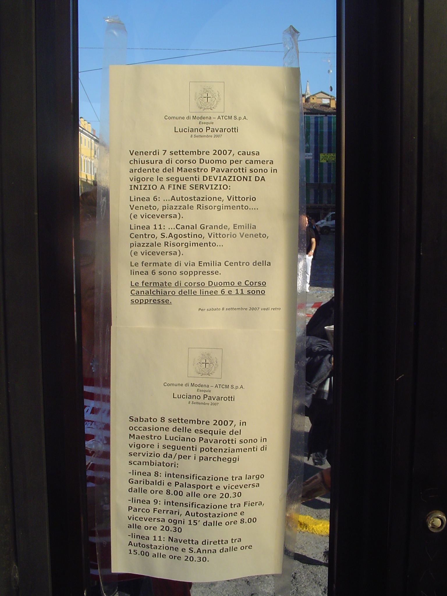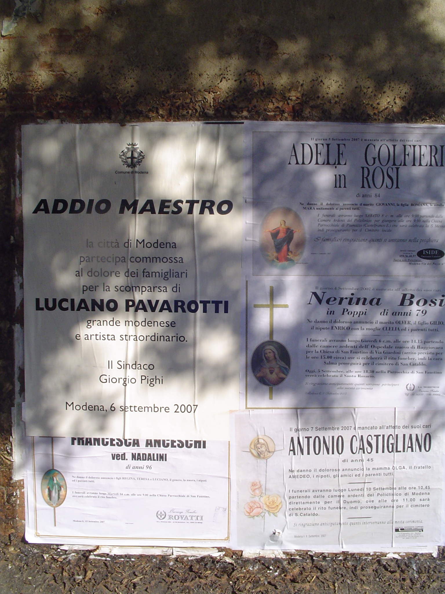 We were amongst the 50,000 mourners paying tribute to Luciano Pavarotti at his funeral in his hometown Modena on Saturday September 8, 2007