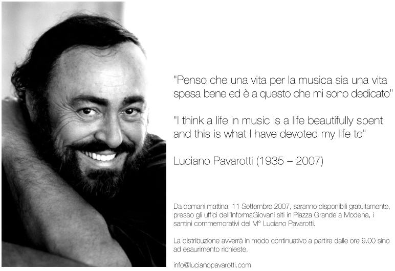 I consider myself lucky to belong to a generation able to witness the maestro live on stage. As a tribute to Luciano I've created a series of "Pavarotti's finest opera moments" Youtube videos (included on this page with a short description). In 2007 we honored the greatest tenor of the 20th century by attending his funeral in Modena, Italy. An impression included.